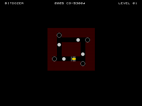 Bitdozer is my tiny love letter for this game who, in turn, is inspired in the classic Sokoban. The main objective is to place the rocks into the targets. They can be placed in any order, but take care to not stuck them or being stuck yourself.